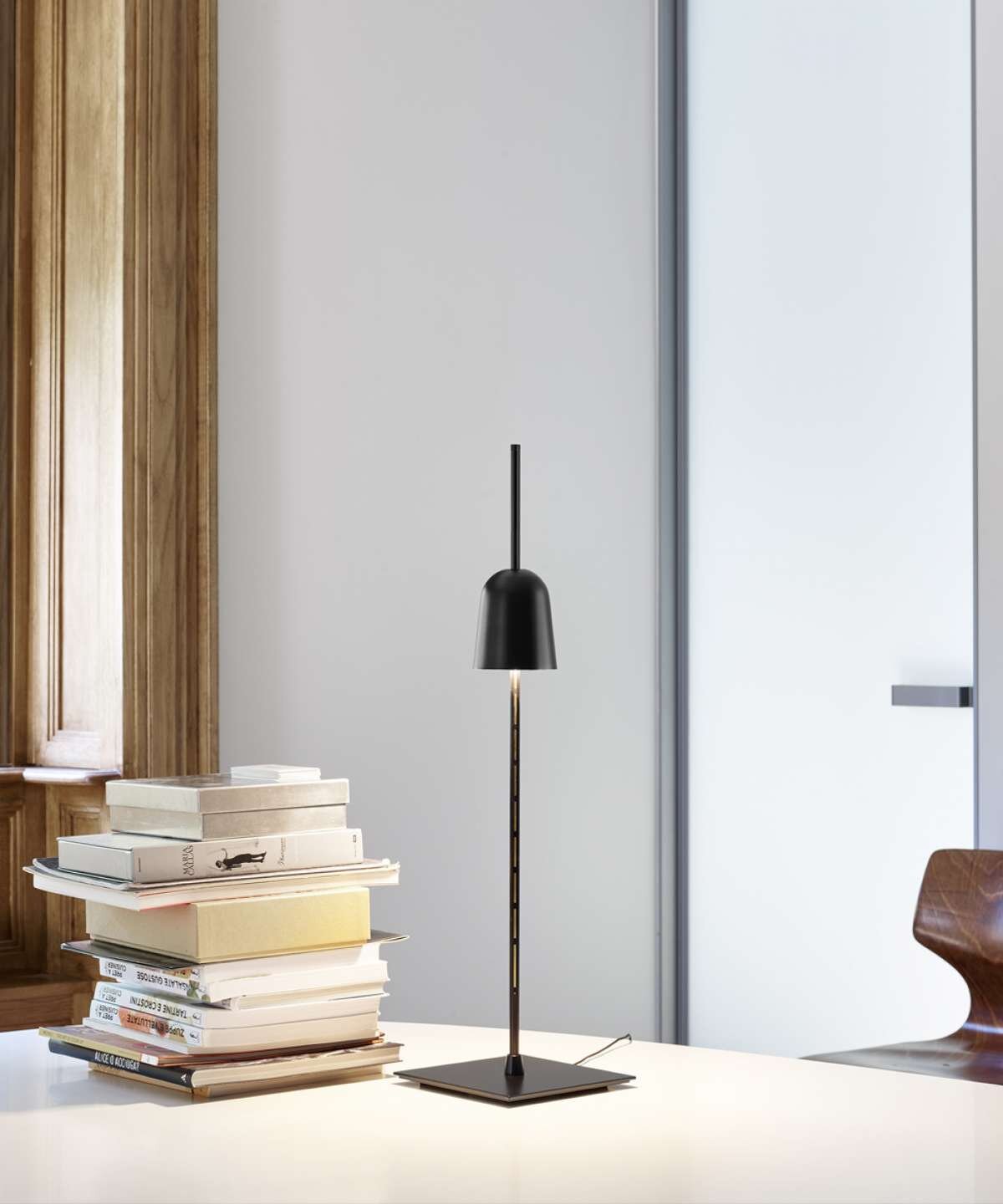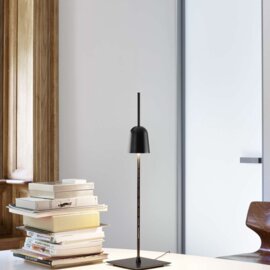 Table lamp Ascent in black, the head of the luminaire is movable and can position a certain intensity and impact of the luminaire.