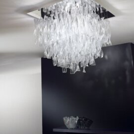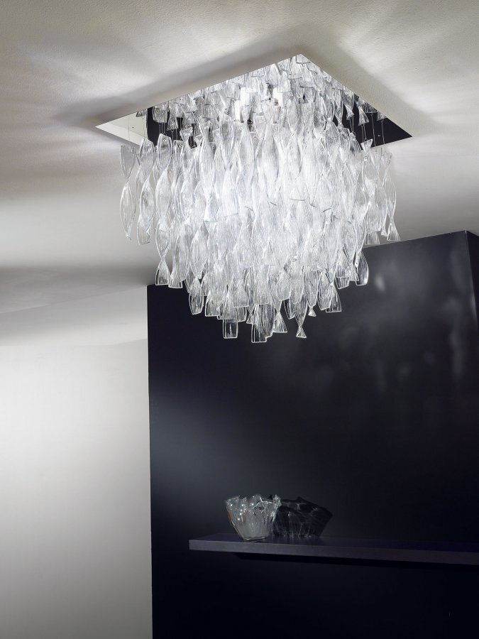 Ceiling light with Murano two-color colored glass necklaces. Available in several colors and sizes.