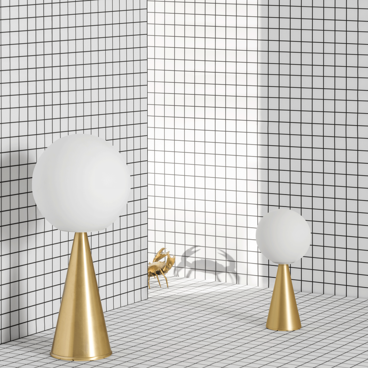 In designing BILIA, the 1932 iconic lamp with a metal cone and a glass sphere, Gio Ponti imagined a smaller version in a range of “spray colours” as on his handwritten notes of the original project.