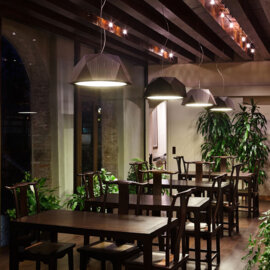 The Crio pendant lamp has a modern and sophisticated design. Its diffuser has a very squarish shape, it can be in three colour versions: white, light wood and dark wood and in three different sizes. The lamp uses energy-efficient light bulbs or integrated LED. It is perfect for the living area of the home but especially for contract projects such as restaurants, hotels, shops or workplaces.
