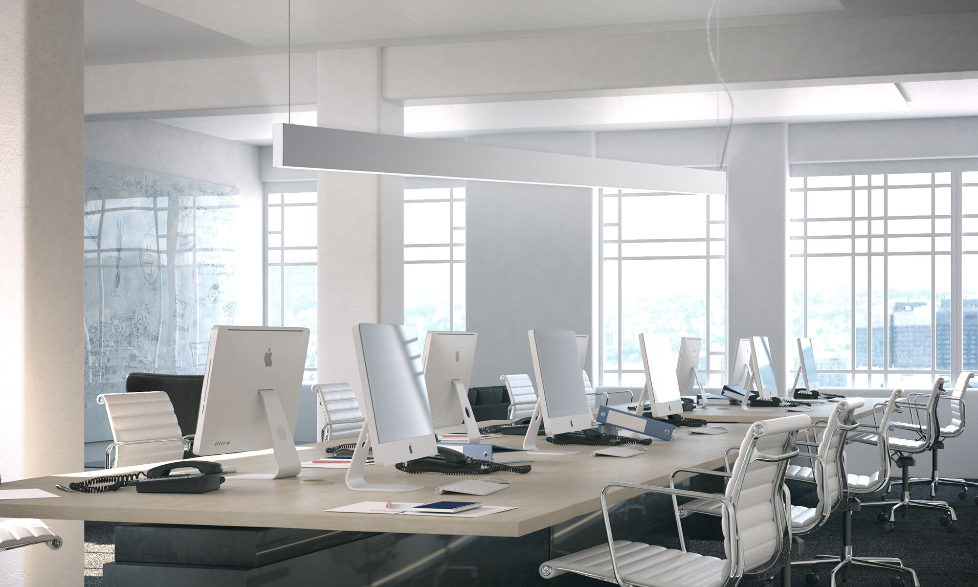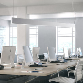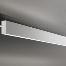 Modular extruded aluminum wall and suspension system. Light source made of LED module with direct and indirect light and separate switching ON/OFF or DALI/PUSH DIM integrated drivers. Finish in polyacrylic paint in white or black and smooth front finish of the profile. Diffusor in opal or micro prismatic polycarbonate.