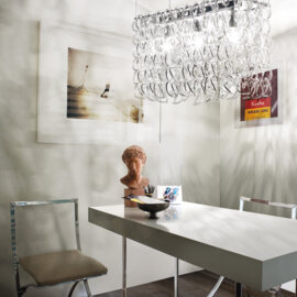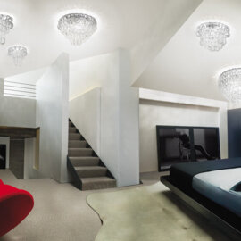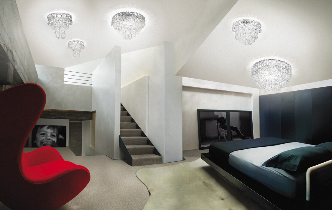 It is available in different colors, sizes and types: ceiling, hanging, wall.