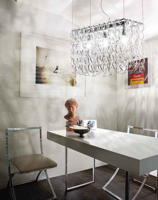 The Giogali Ceiling Lamp is a system made up of hand-made glass joints.