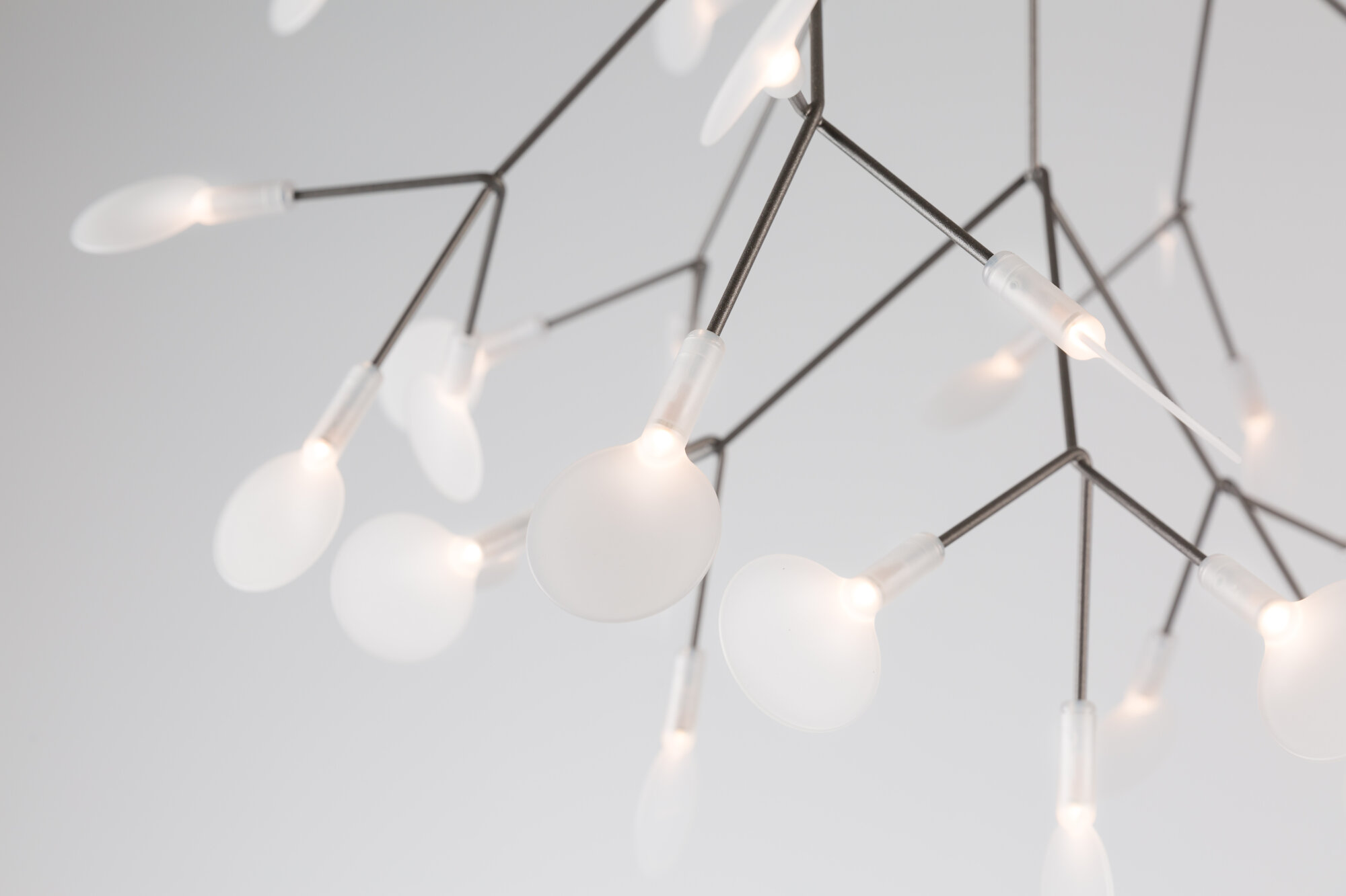The Heracleum Small suspension Light is an interesting decorative lighting that consists of metal wire and polycarbonate lenses and hangs on an ultra thin wire.