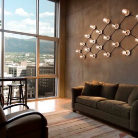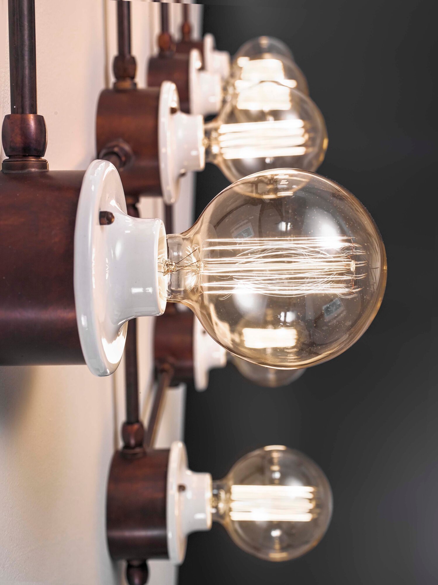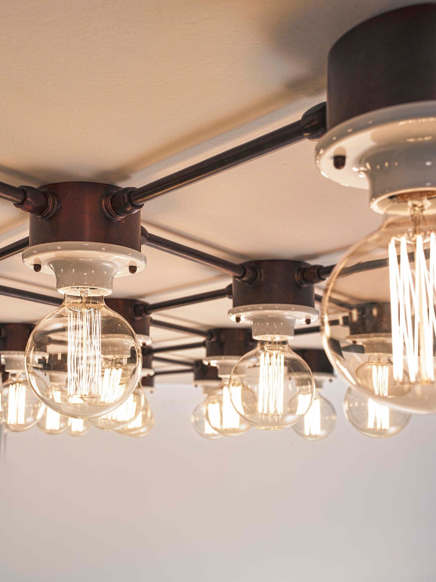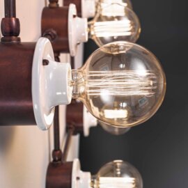 The spot consists of a base in antique brass or satin nickel and from a ceramic lamp holder, glossy white or glossy black finishing. It can be used as a single spot or with more outputs that allow the realization of a rhombus. Conduits are available in the same finishes of the spot.