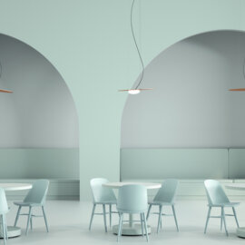 Available in three colours and two sizes. Built-in dimmable LED light source.