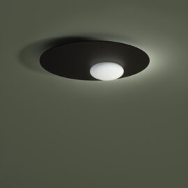 Collection consisting of steel and aluminum ceiling/wall lamps, suspended lamps and floor lamps with opaline blown glass diffuser.