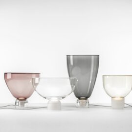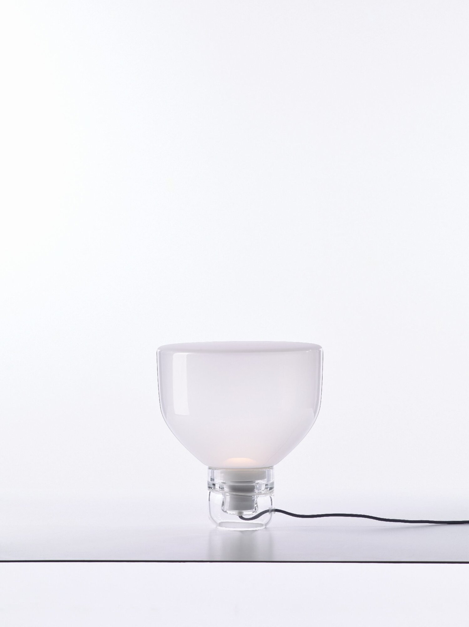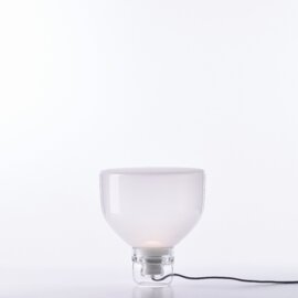 The LED light source is embedded in the base beneath a metal and triplex-opal glass shroud. The upper surface, sandblasted by hand, is treated with a special nano coating to prevent the accumulation of dust and smudges. The collection comprises four table lamps that cast a light of intimate character.