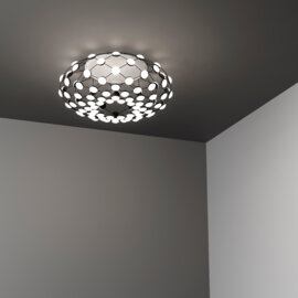 The Mesh family has expanded with a ceiling version with 96 light points. The particular structure permits exceptional freedom in the control of luminance. It is possible to govern the intensity of the light.
