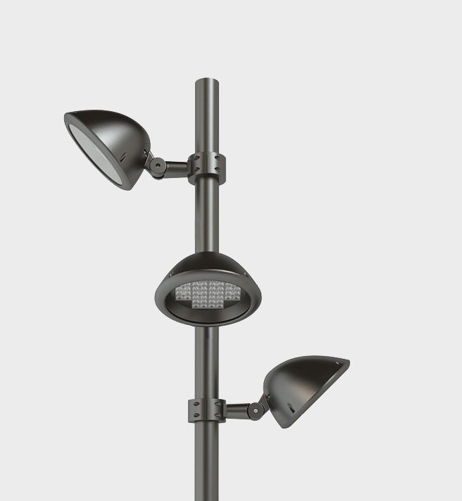 The products in the SIGMA line include floodlights and wall-washers which optimise visual comfort while maintaining high performance in terms of photometric distribution and illumination efficiency. The form of the SIGMA line has been created to allow the optical unit to be set back from the screen, resulting in a reduction of the visibility of the light emitting surfaces. The surface finish of the collector eliminates all undesired light reflection, guaranteeing visual comfort and optical control. SIGMA can be oriented with precision thanks to its fixing base which can be rotated ±30° and tilted +90° -35°. Continuously - adjustable pointing and locking system. Colour: Sablé 100 Noir. Optics: medium, wide, ultra-wide beam and wall washer. Colour temperature: 3000K and 4000K (2200K on request). CRI (Colour Rendering Index): Ra ≥ 80. SIGMA is a guarantee of reliability and quality that fully complies with all the values of “Made in Italy” design and production.