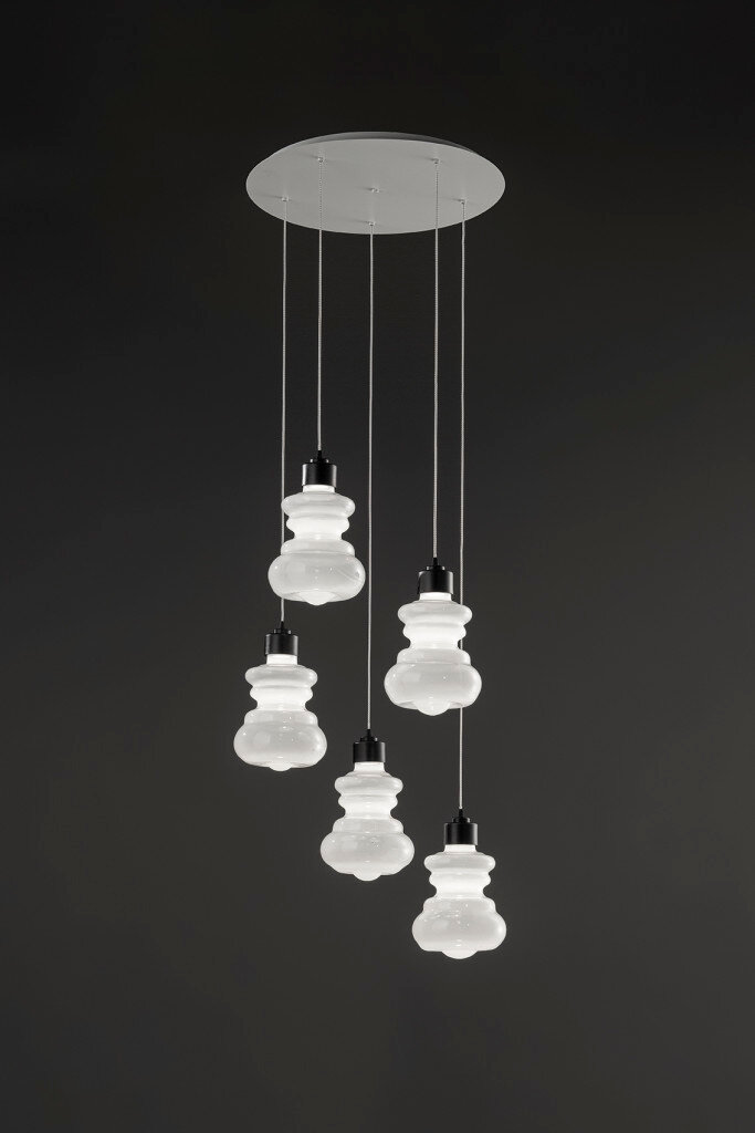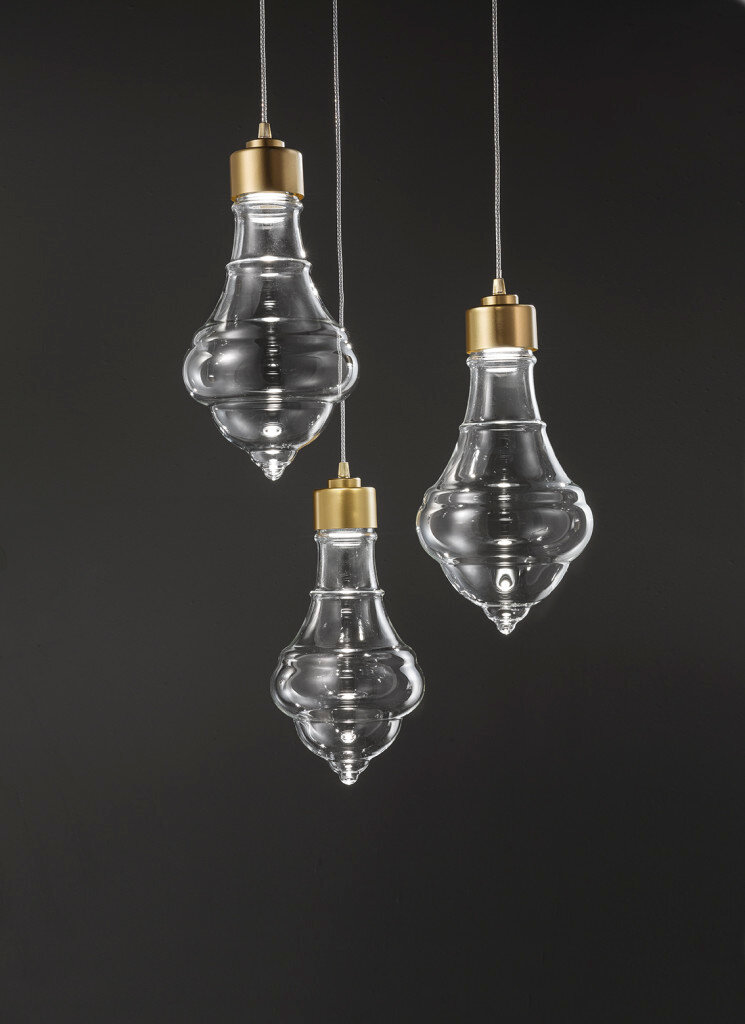 Inspired by the age-old game for children both in the name and shape, Trottola is a collection of three different blown glass suspensions with a strong personality.