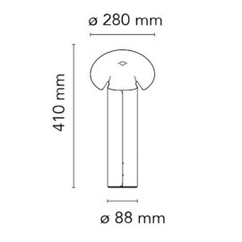 Stolní lampa z hliníku s reflexním povrchem.