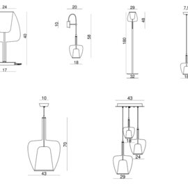 Kolekce poskytuje ucelenou řadu svítidel od závěsných, nástěnných, přes stolní lampy, i lampy stojací.