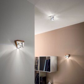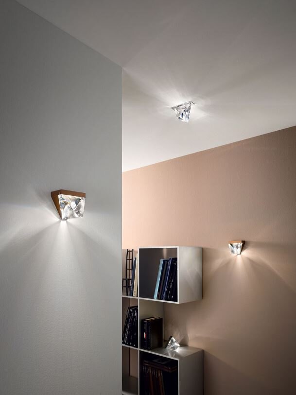 Nástěnné svítidlo Tripla s průhledným křišťálovým difuzorem a chromovou základnou vytváří velmi dekorativní obrazce na stěně. Je vhodné do koupelen, chodeb nebo i zasedacích místnotí a kanceláří.